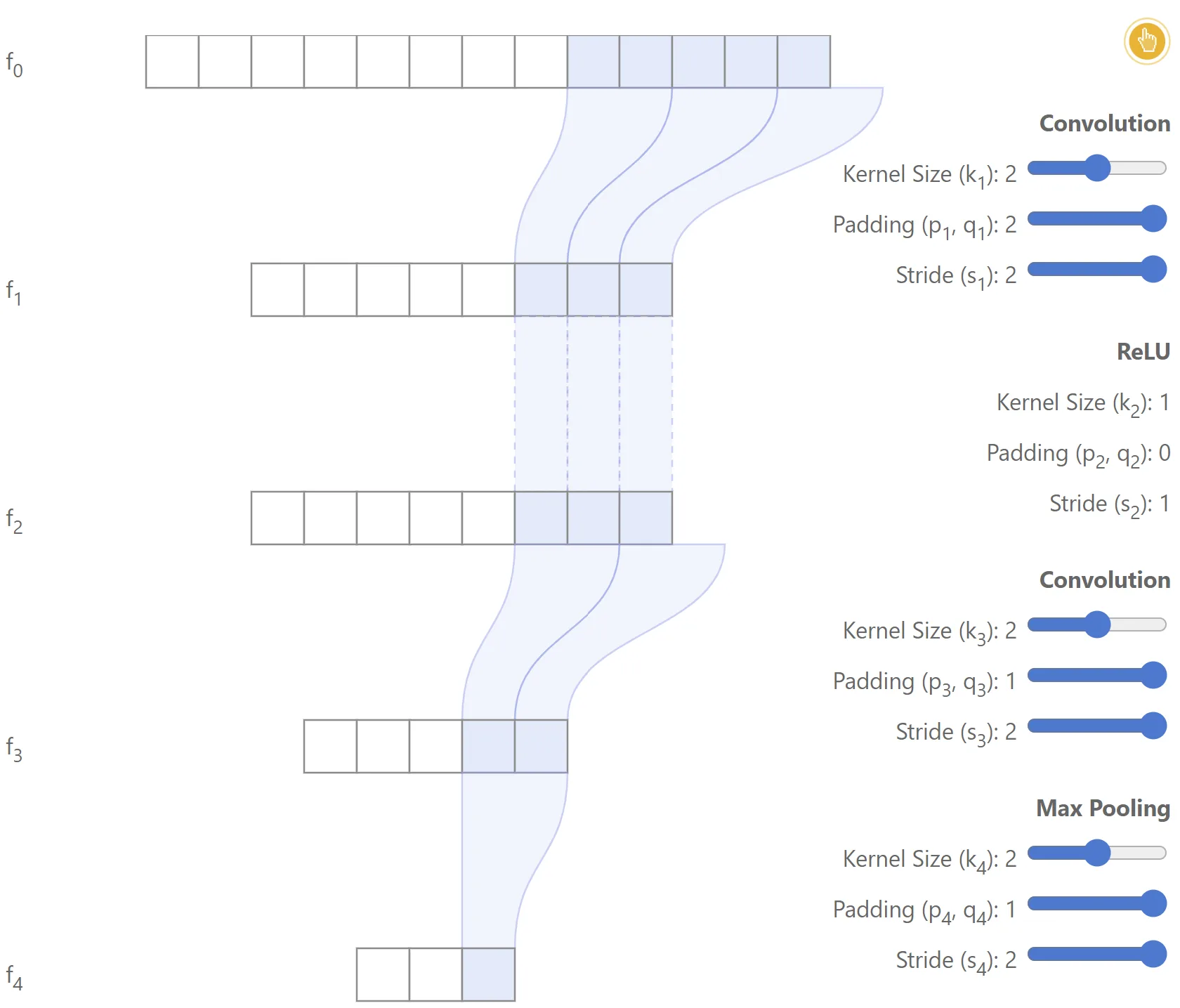 - if instead the stride is greater than for a particular layer, the receptive field increases proportionally for all lower layers.