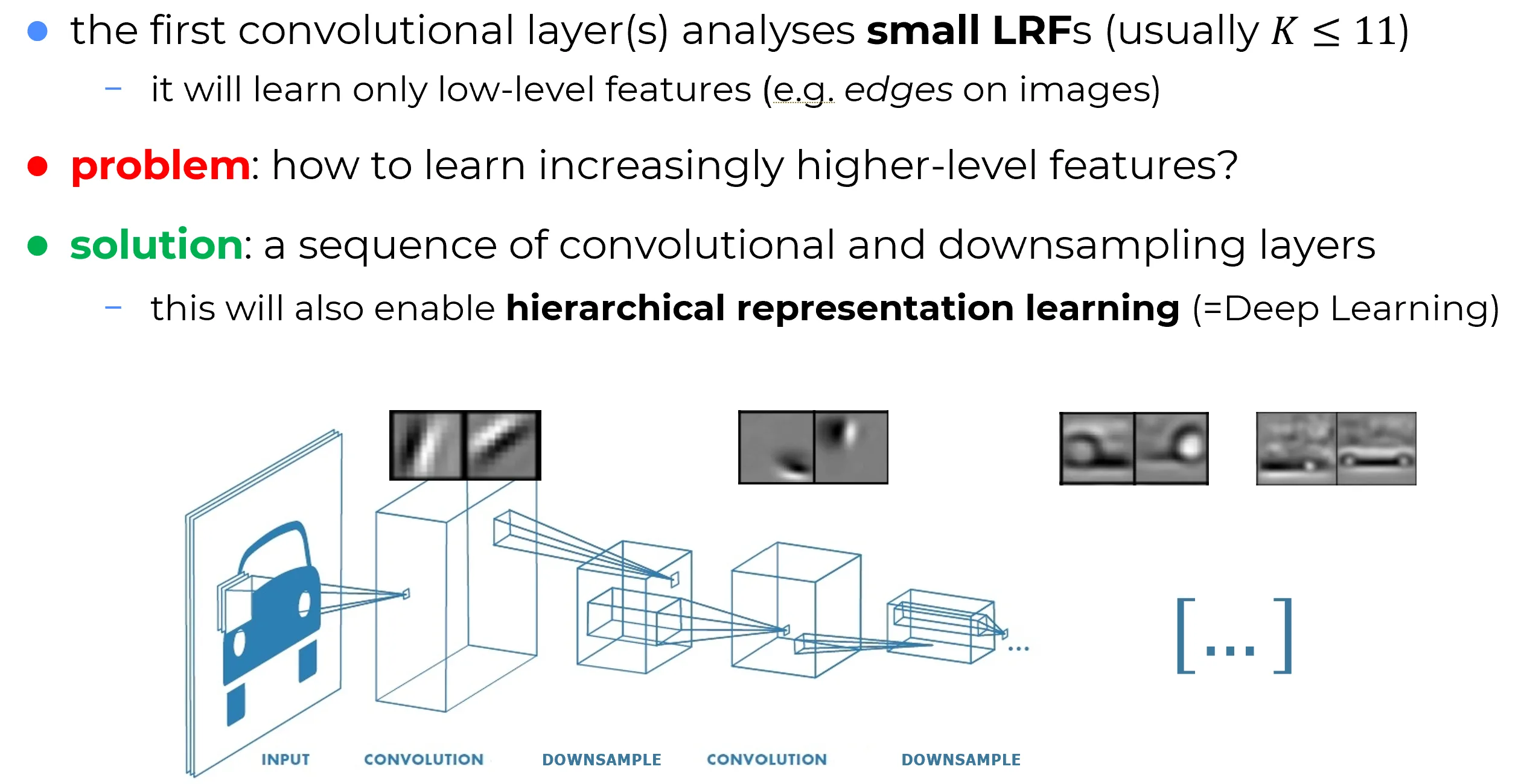 It is necessary to reduce the resolution, that is, to perform downsampling: it is precisely this change of scale that enables the network to capture increasingly complex patterns in the data.