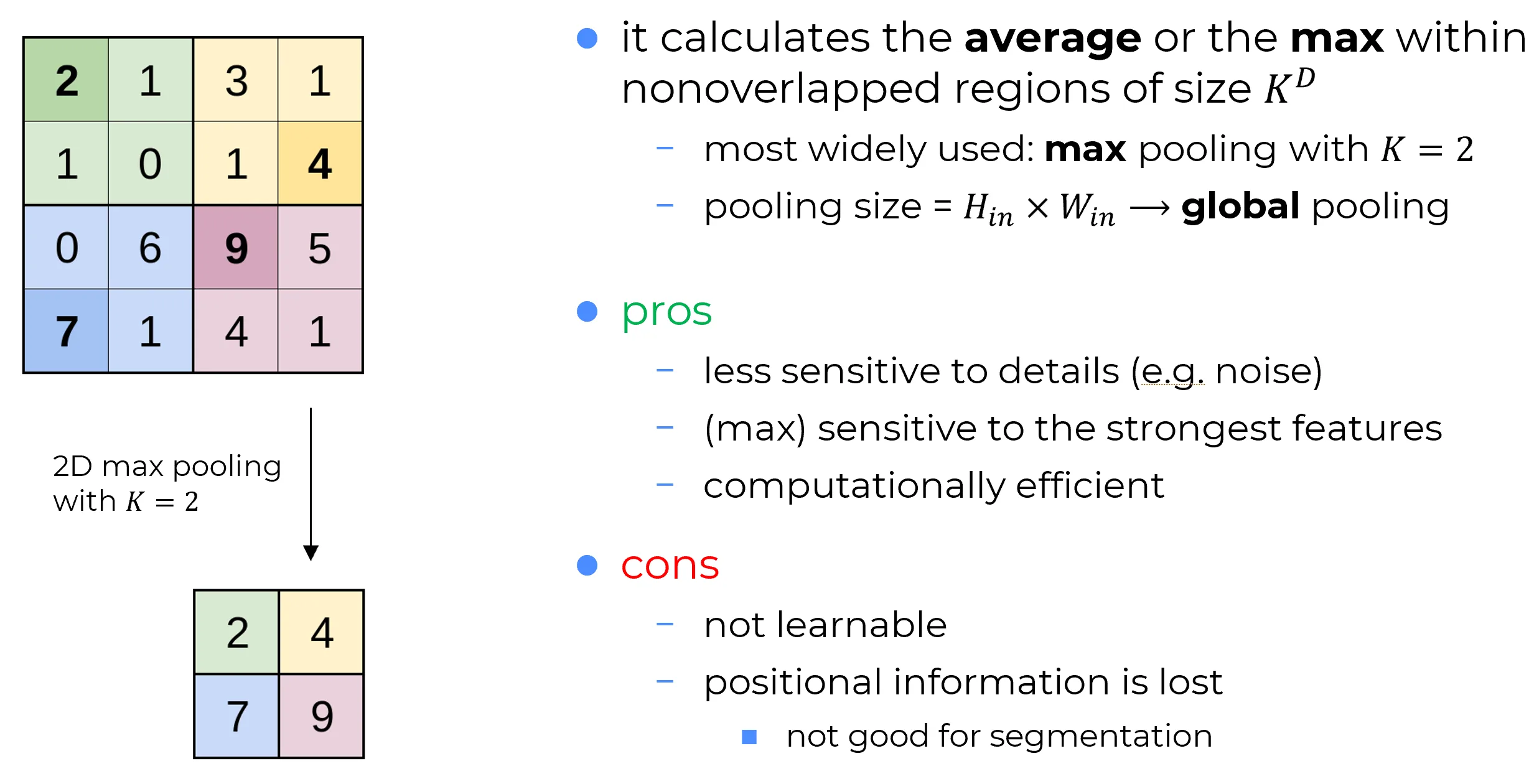 it is only a calculation (max or average) and does not adapt to the data.- Positional information is lost: