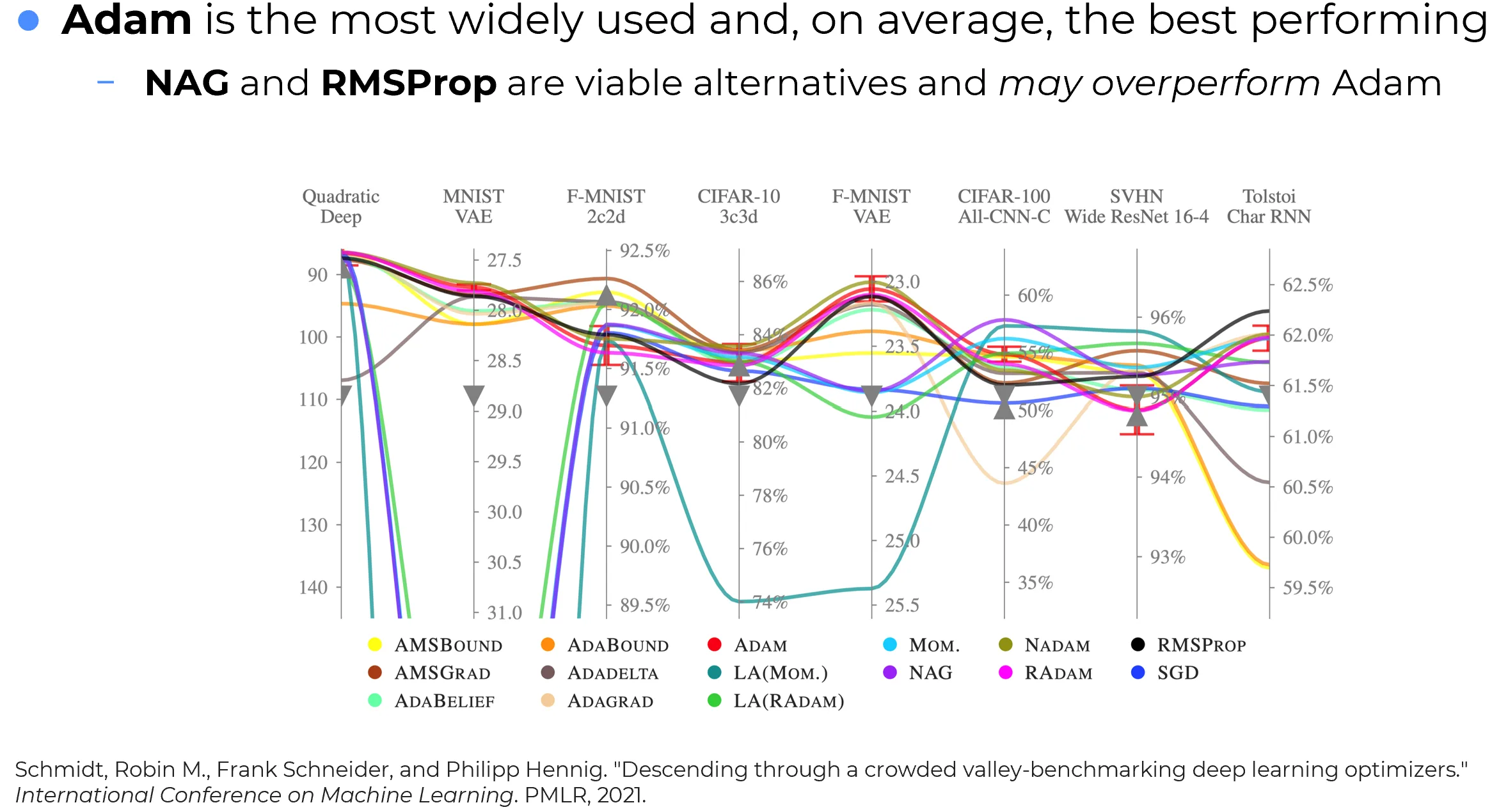 In letteratura si osserva la seguente regola empirica: Adam è un ottimizzatore che funziona molto bene quando la rete è “vergine”, ossia non è mai stata addestrata prima e i pesi sono ancora casuali.
