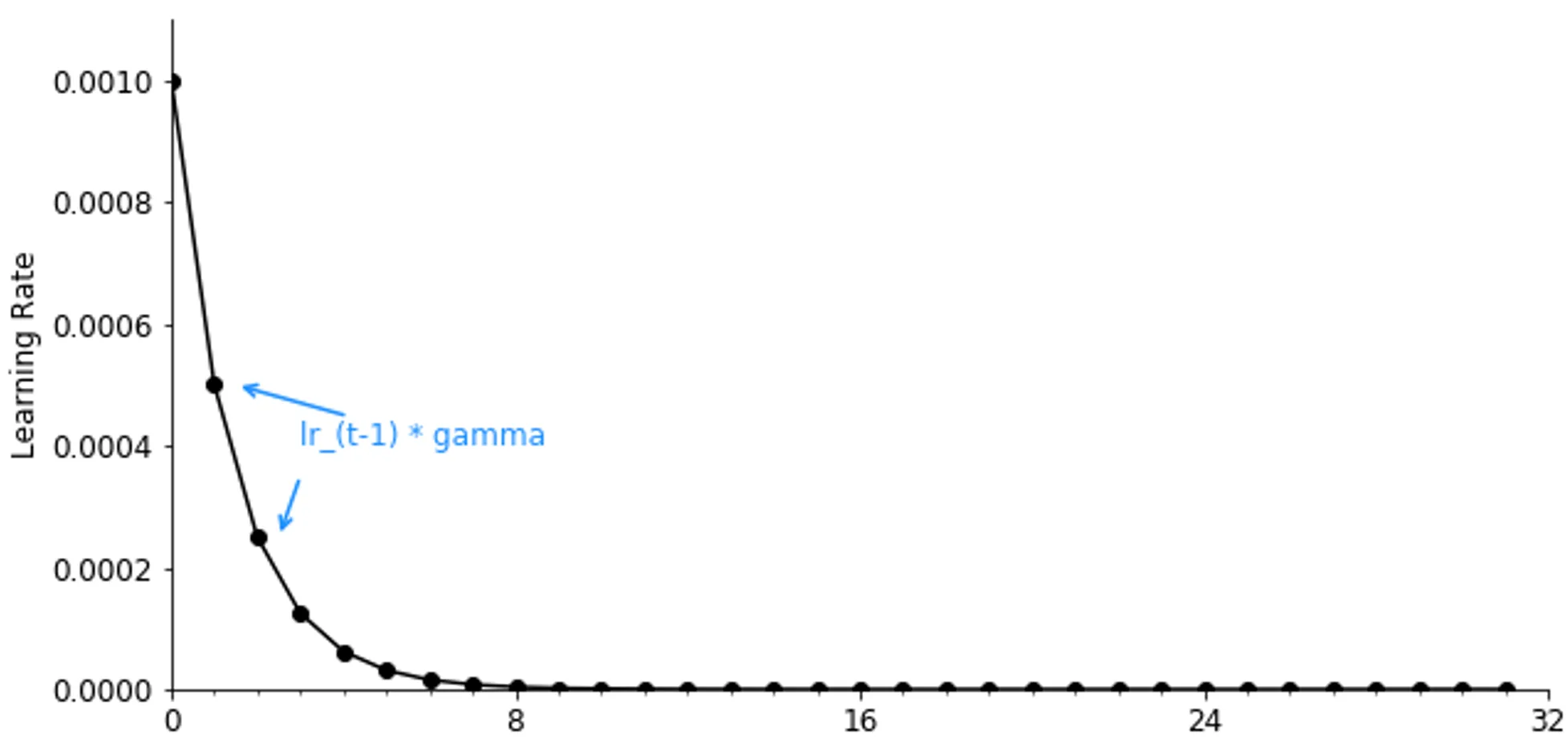 gamma() is crucial. An overly aggressive decay (a lowgammavalue) can diminish the learning rate too quickly, preventing the model from exploring the parameter space effectively in the later stages of training.