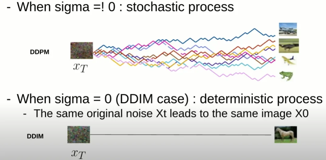 So, DDPM is a special case of DDIM when . This process is stochastic.
