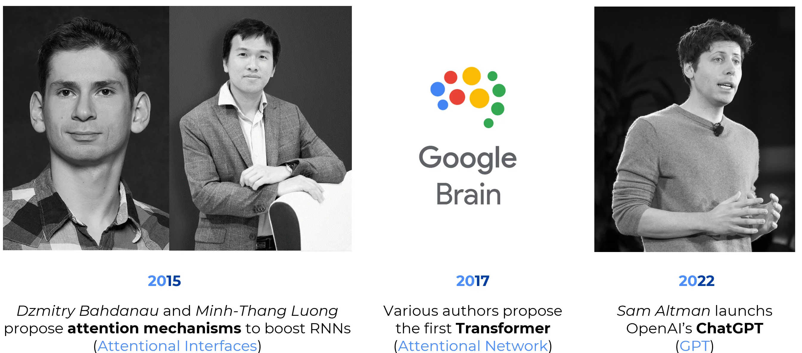 | 2015 | Attention in RNNs | Dzmitry Bahdanau and Minh-Thang Luong demonstrated that allowing a model to selectively focus on different parts of the input at each step improves Neural Machine Translation. This Attentional Interface addressed the “fixed-context bottleneck” inherent in standard Seq2Seq models. |