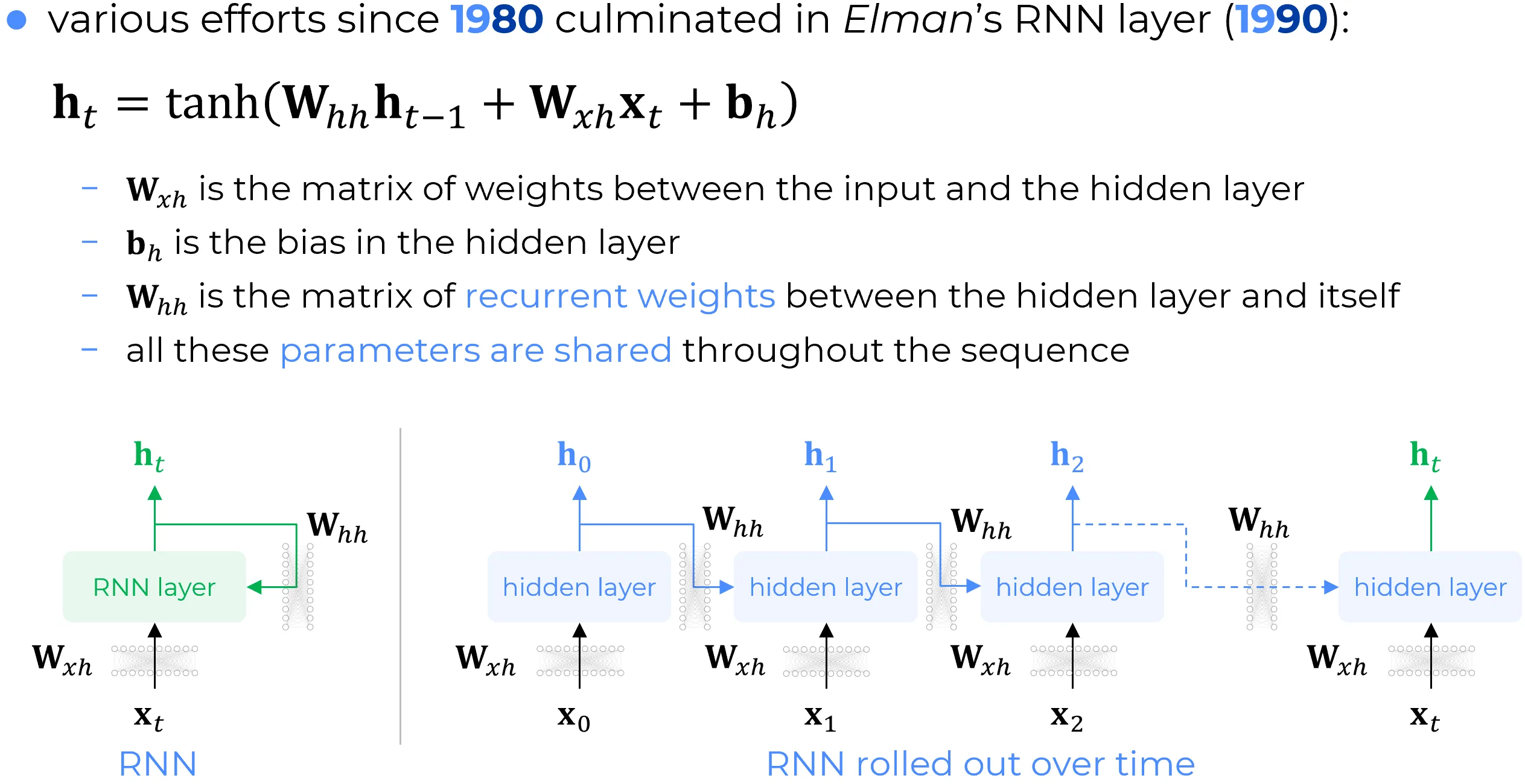Nel 1990, un paper di Elman definì formalmente il layer RNN.